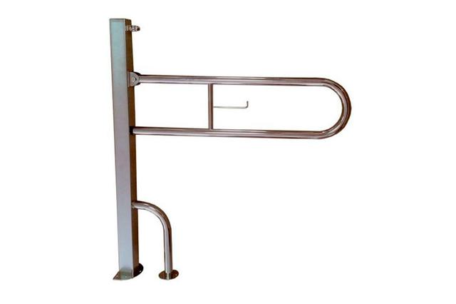 Поручень для інвалідів відкидний підлоговий посилений з держателем паперу, ручка ∅32 мм, нержавіюча сталь.